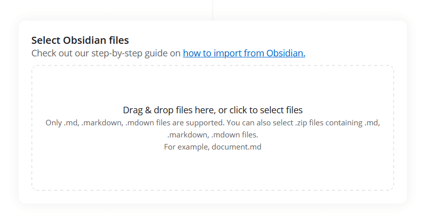 We also spent some time improving the documentation and tutorials on how to import from each different app. There's now a step-by-step import guide for Obsidian & plain text files.